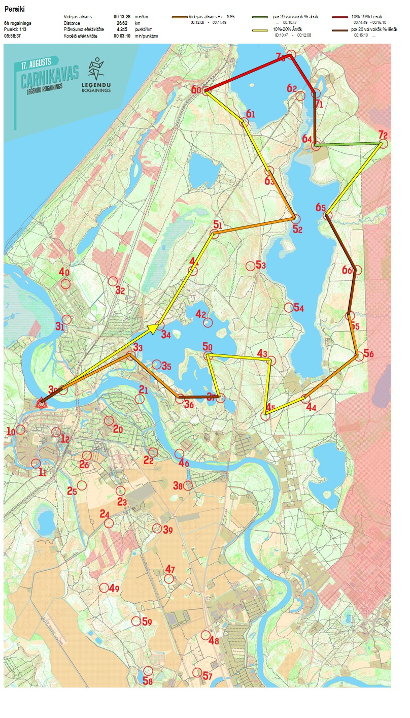 | Order No. | CP No. | Time | Points | Total points | Stage time | Total time | Stage distance | Total distance | min/km | min/pts | Split place |
