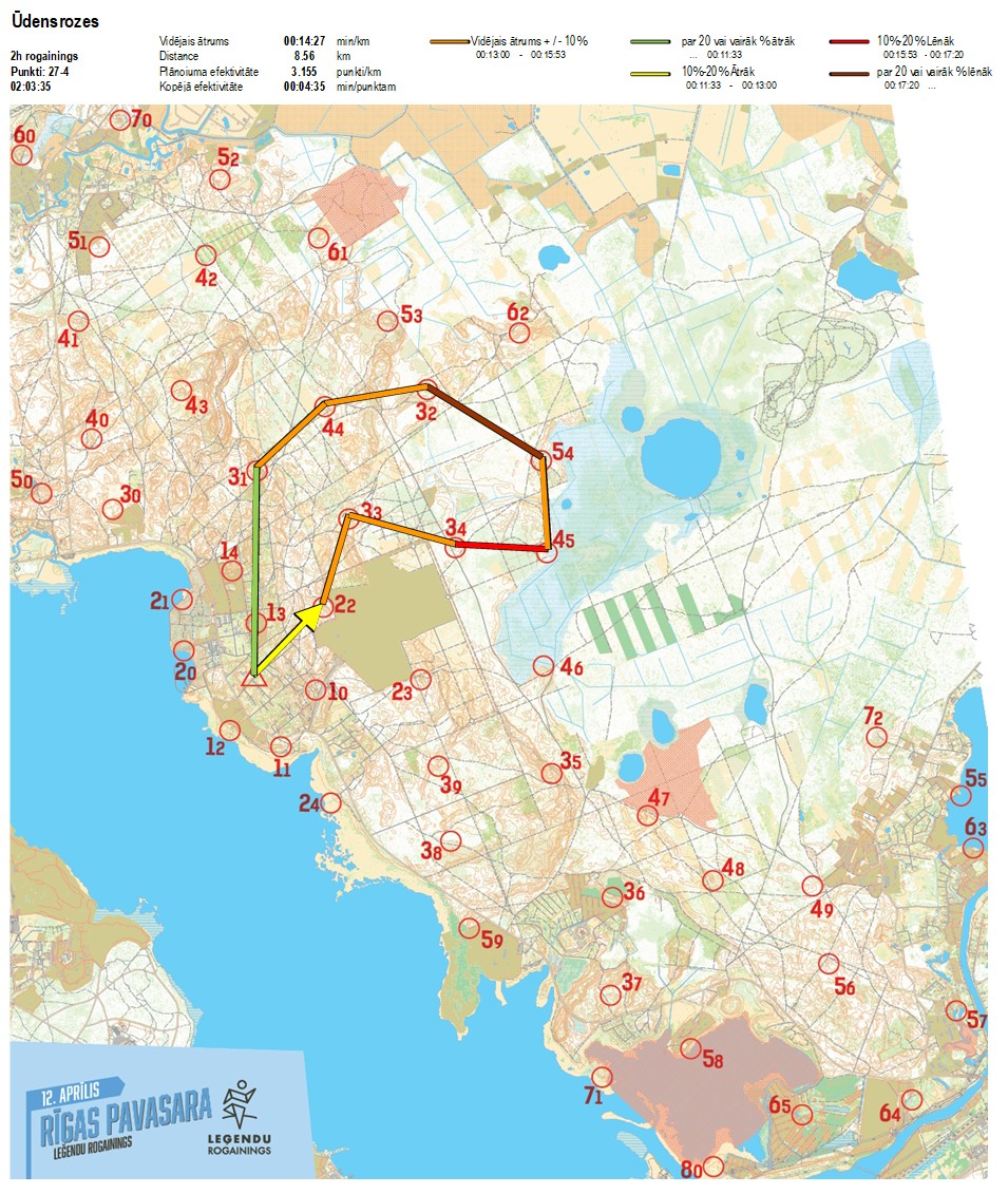 | Order No. | CP No. | Time | Points | Total points | Stage time | Total time | Stage distance | Total distance | min/km | min/pts | Split place |