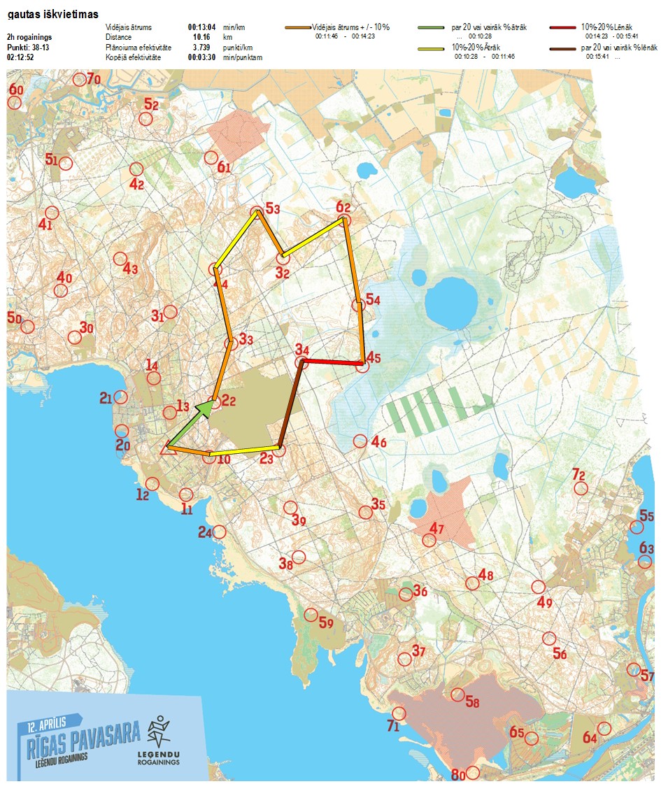 | Order No. | CP No. | Time | Points | Total points | Stage time | Total time | Stage distance | Total distance | min/km | min/pts | Split place |