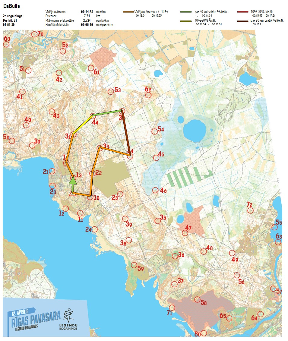 | Order No. | CP No. | Time | Points | Total points | Stage time | Total time | Stage distance | Total distance | min/km | min/pts | Split place |