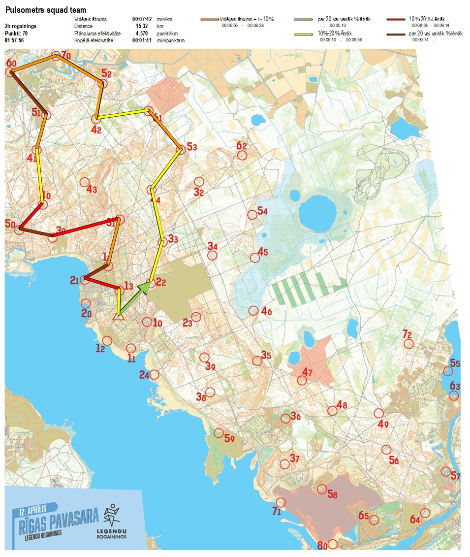 | Order No. | CP No. | Time | Points | Total points | Stage time | Total time | Stage distance | Total distance | min/km | min/pts | Split place |