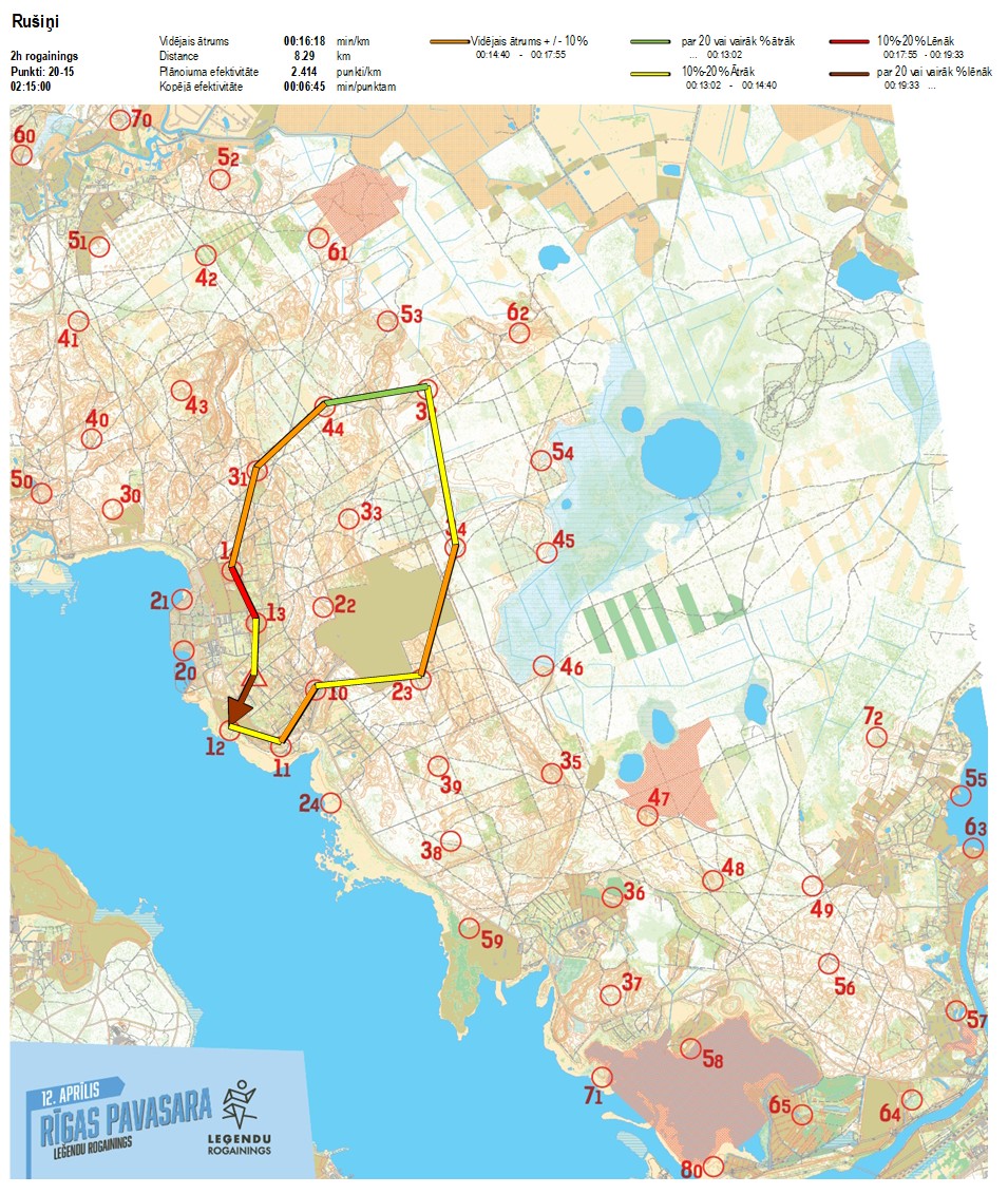 | Order No. | CP No. | Time | Points | Total points | Stage time | Total time | Stage distance | Total distance | min/km | min/pts | Split place |