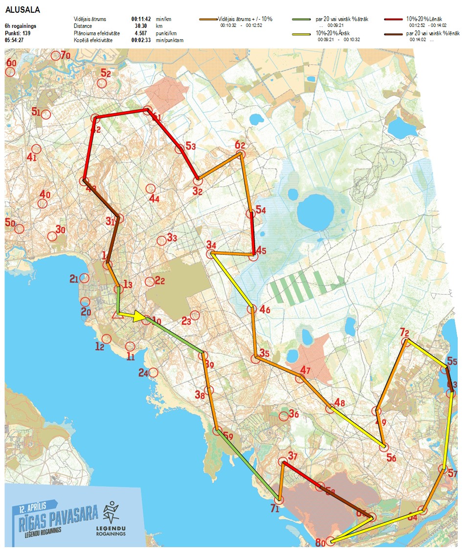 | Order No. | CP No. | Time | Points | Total points | Stage time | Total time | Stage distance | Total distance | min/km | min/pts | Split place |