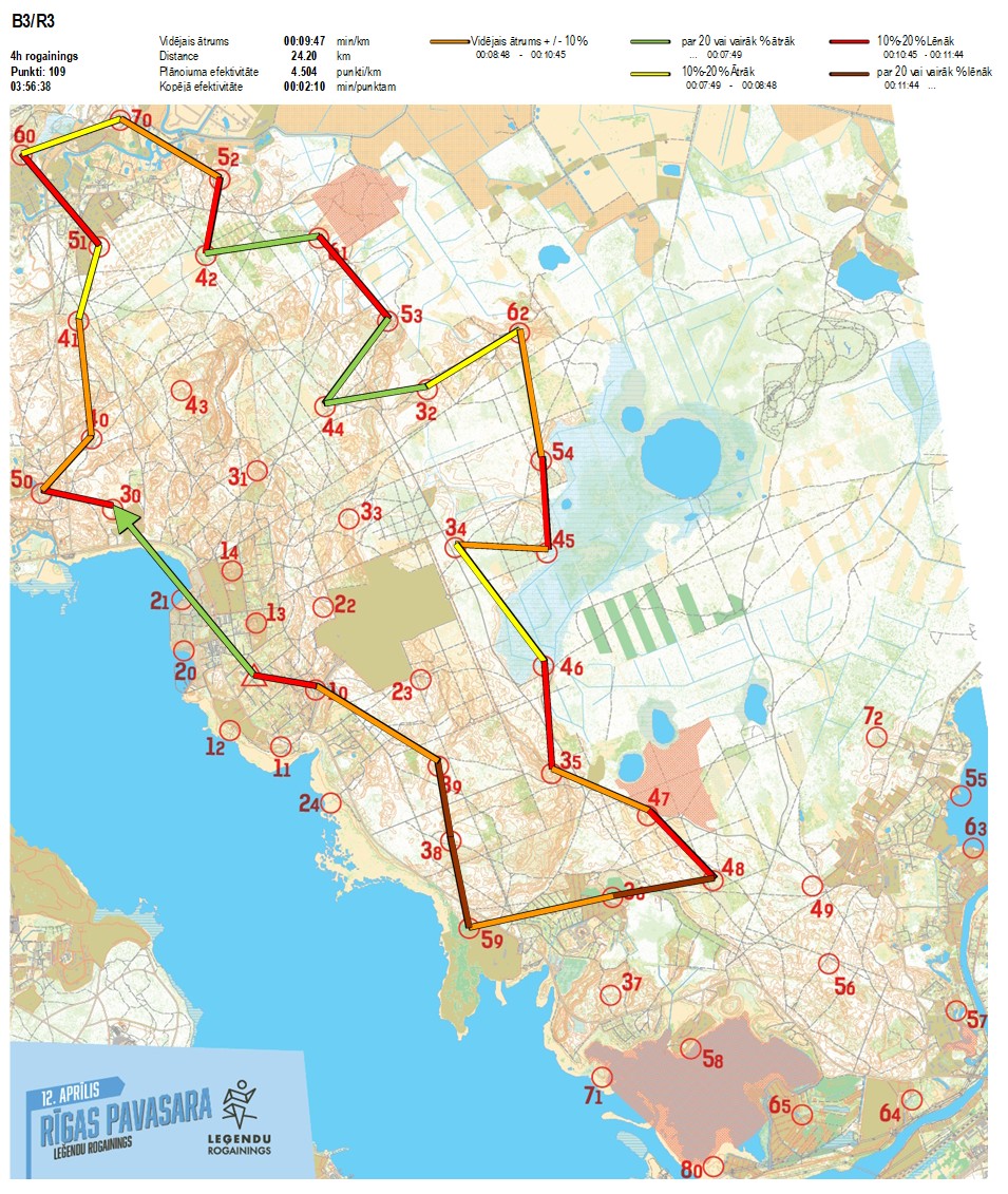 | Order No. | CP No. | Time | Points | Total points | Stage time | Total time | Stage distance | Total distance | min/km | min/pts | Split place |