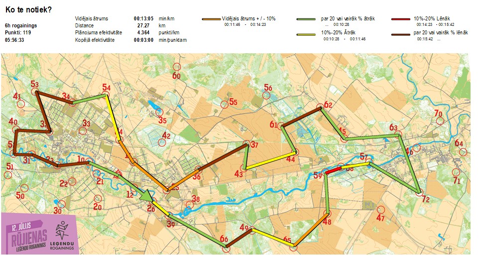 | Order No. | CP No. | Time | Points | Total points | Stage time | Total time | Stage distance | Total distance | min/km | min/pts | Split place |