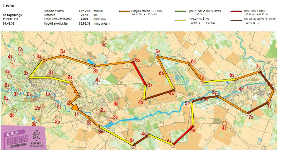 | Order No. | CP No. | Time | Points | Total points | Stage time | Total time | Stage distance | Total distance | min/km | min/pts | Split place |