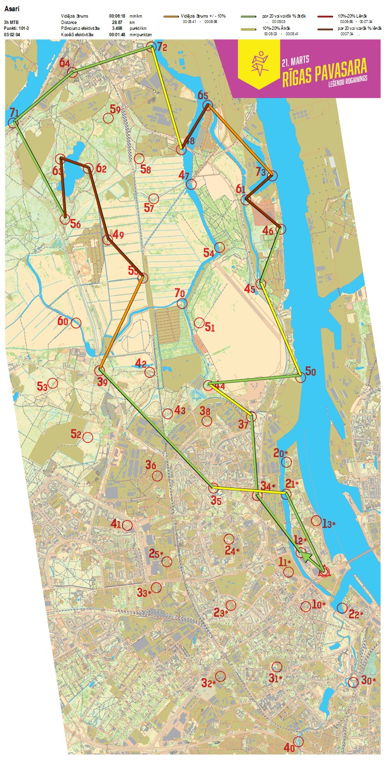 | Order No. | CP No. | Time | Points | Total points | Stage time | Total time | Stage distance | Total distance | min/km | min/pts | Split place |