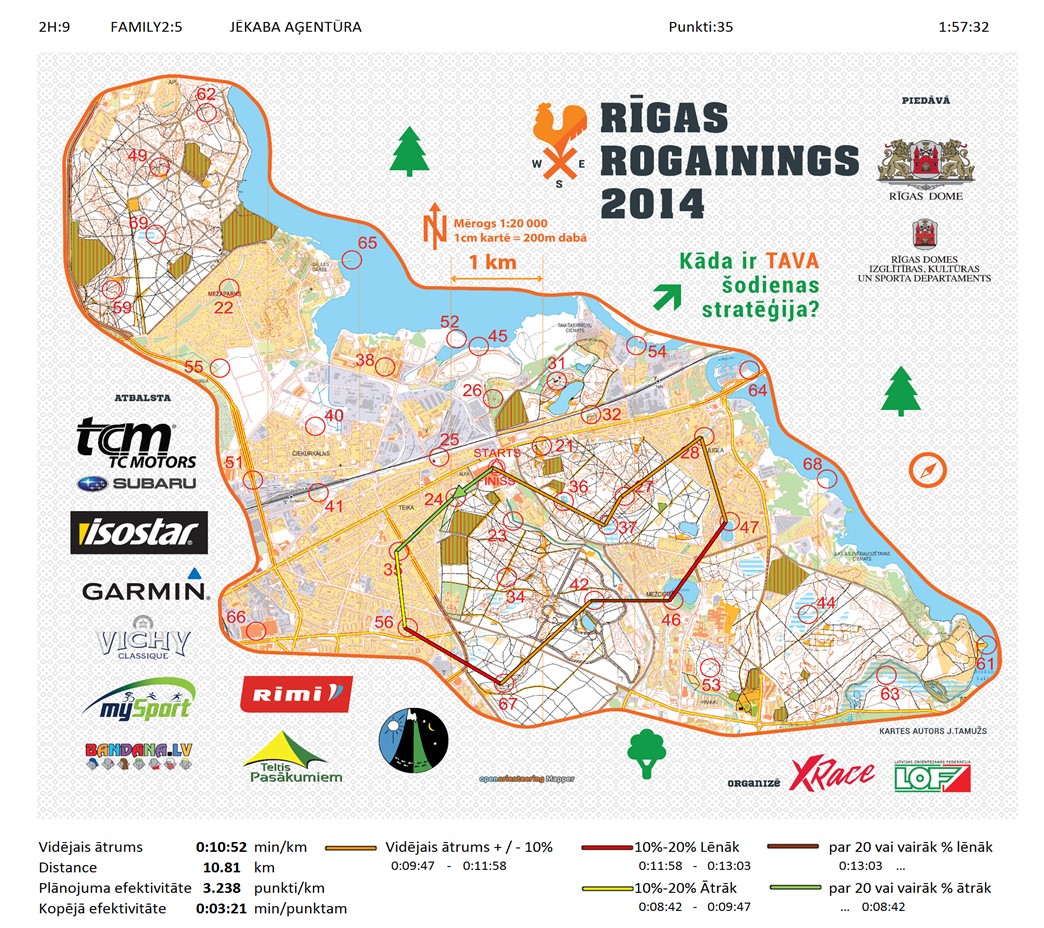 | Secības nr | KP nr | Laiks | Punkti | Kopējie punkti | Posma laiks | Kopējais laiks | Posma distance | Kopējā distance | min/km | min/pts | Vieta etapā |