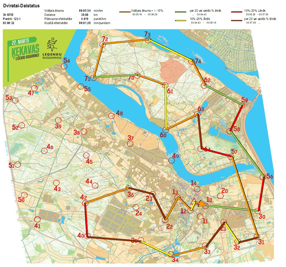 Secības nr KP nr Laiks Punkti Kopējie punkti Posma laiks Kopējais laiks Posma distance Kopējā distance min/km min/pts Vieta etapā