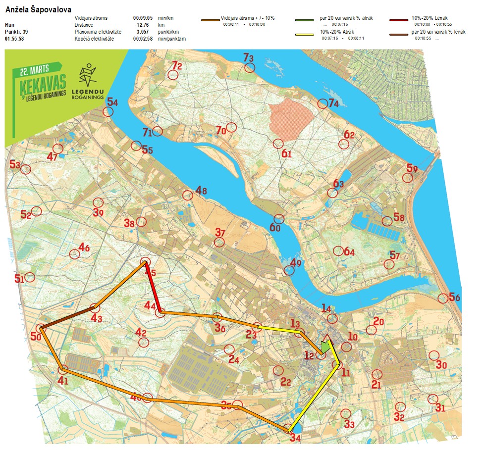 Secības nr KP nr Laiks Punkti Kopējie punkti Posma laiks Kopējais laiks Posma distance Kopējā distance min/km min/pts Vieta etapā