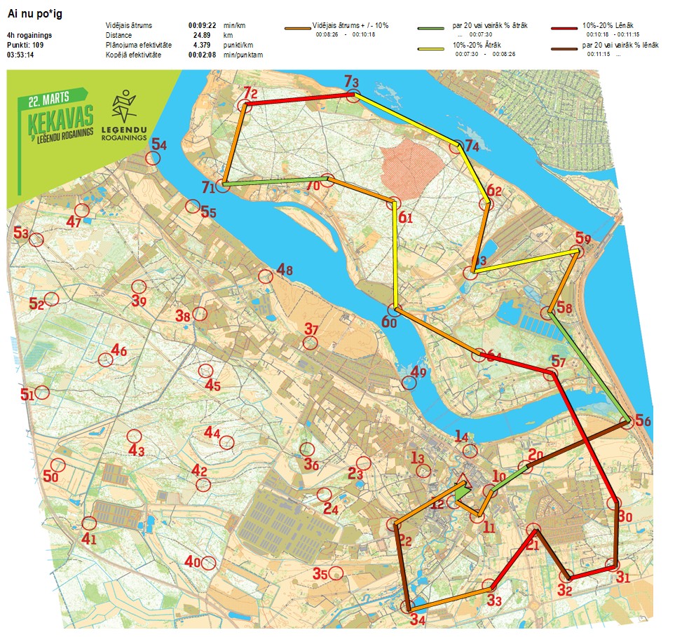 Secības nr KP nr Laiks Punkti Kopējie punkti Posma laiks Kopējais laiks Posma distance Kopējā distance min/km min/pts Vieta etapā