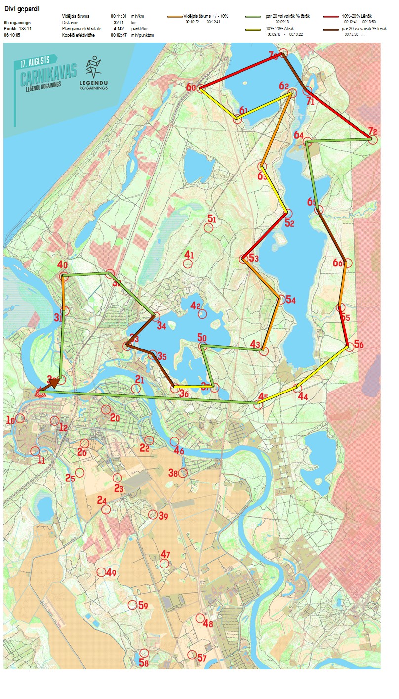 Secības nr KP nr Laiks Punkti Kopējie punkti Posma laiks Kopējais laiks Posma distance Kopējā distance min/km min/pts Vieta etapā