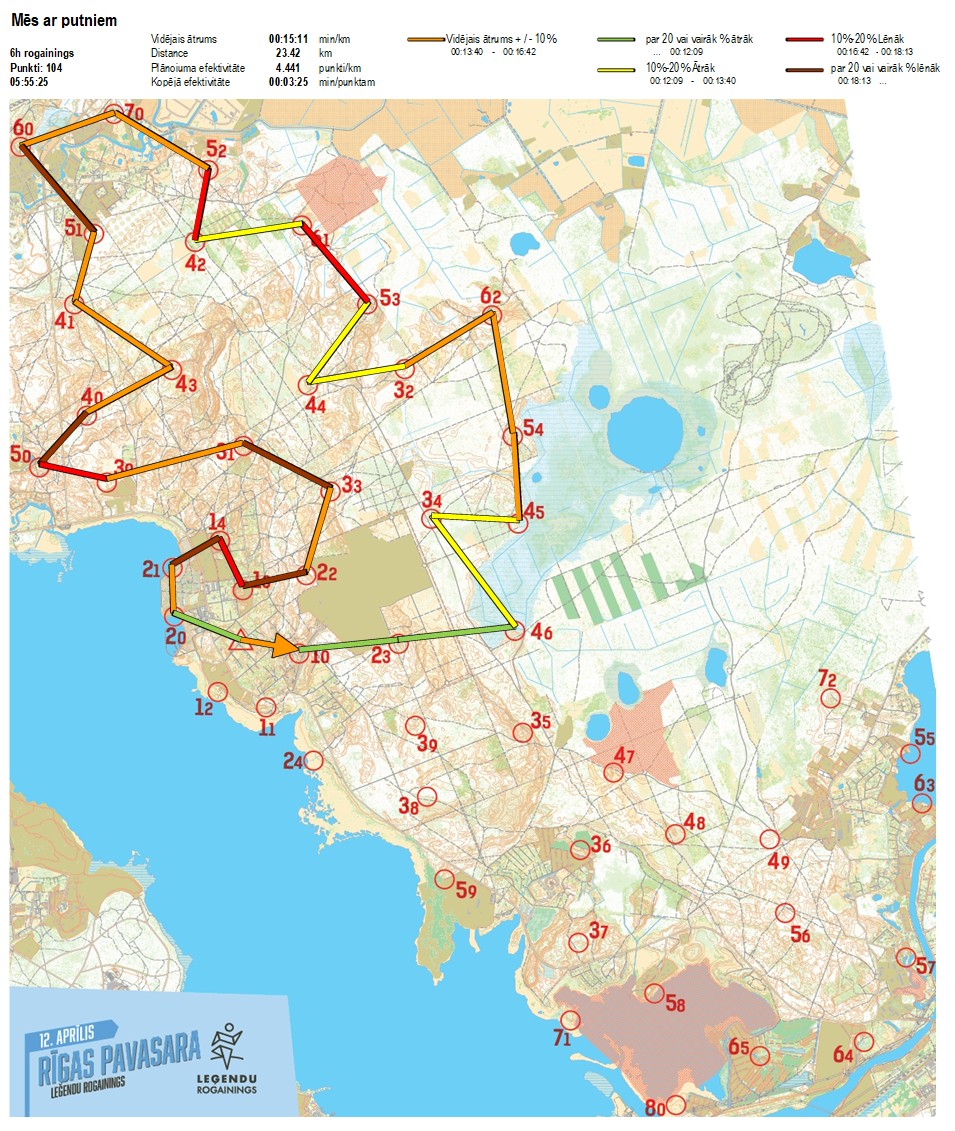 Secības nr KP nr Laiks Punkti Kopējie punkti Posma laiks Kopējais laiks Posma distance Kopējā distance min/km min/pts Vieta etapā