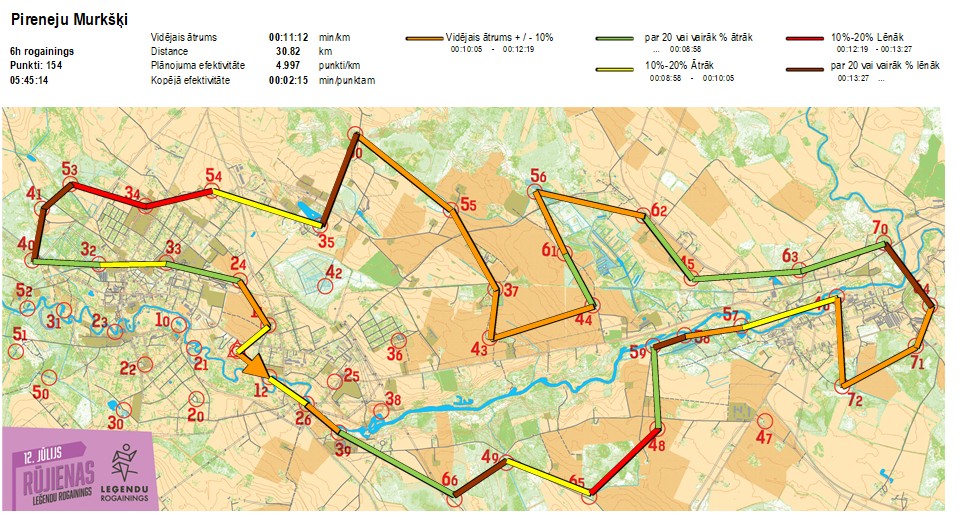 Secības nr KP nr Laiks Punkti Kopējie punkti Posma laiks Kopējais laiks Posma distance Kopējā distance min/km min/pts Vieta etapā