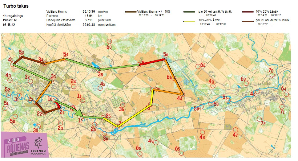 Secības nr KP nr Laiks Punkti Kopējie punkti Posma laiks Kopējais laiks Posma distance Kopējā distance min/km min/pts Vieta etapā